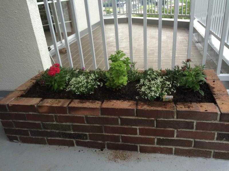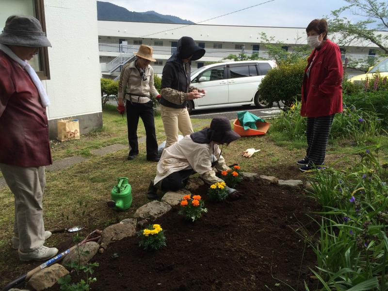 手作り花壇にお花を植えました。