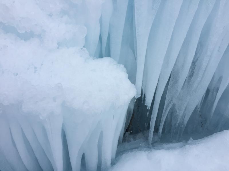 会場に入る前、道路から樹氷が見えましたが、透き通った青さに魅入られました。