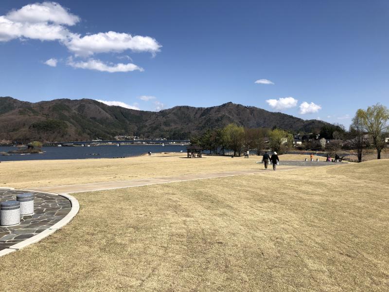 ※テニスコートはなくなってしまいました…湖岸の砂利の広場はきれいな芝生広場に生まれ変わりました。