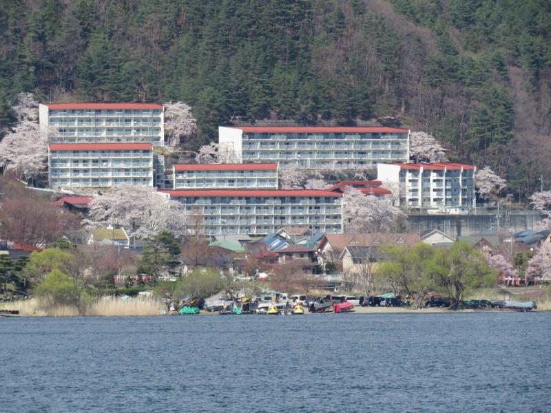 対岸にあるのんびれっじ河口湖もきれいに見えます。
