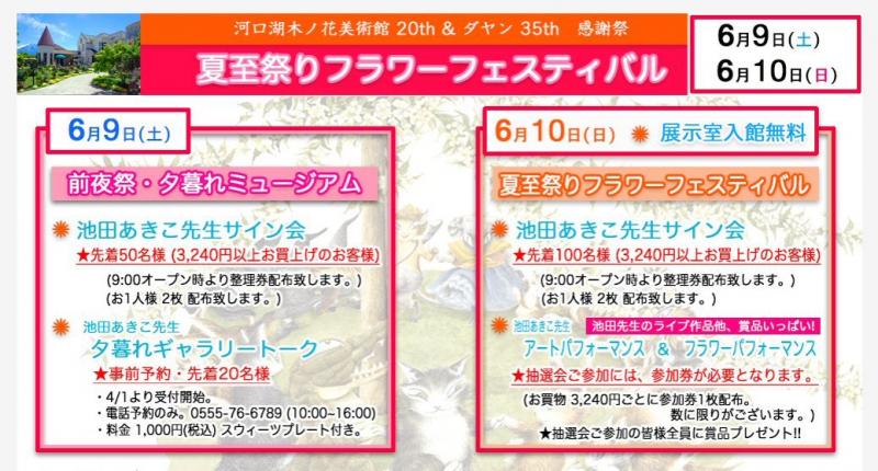 6月9日(土)10日(日)は木ノ花美術館20周年&ダヤン35周年【夏至祭りフラワーフェスティバル?】