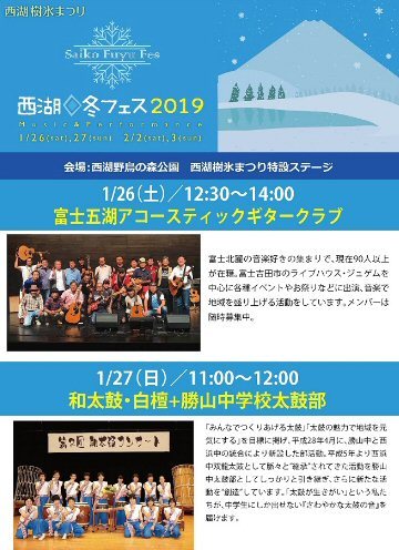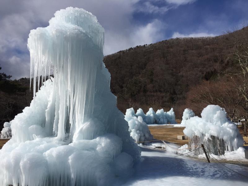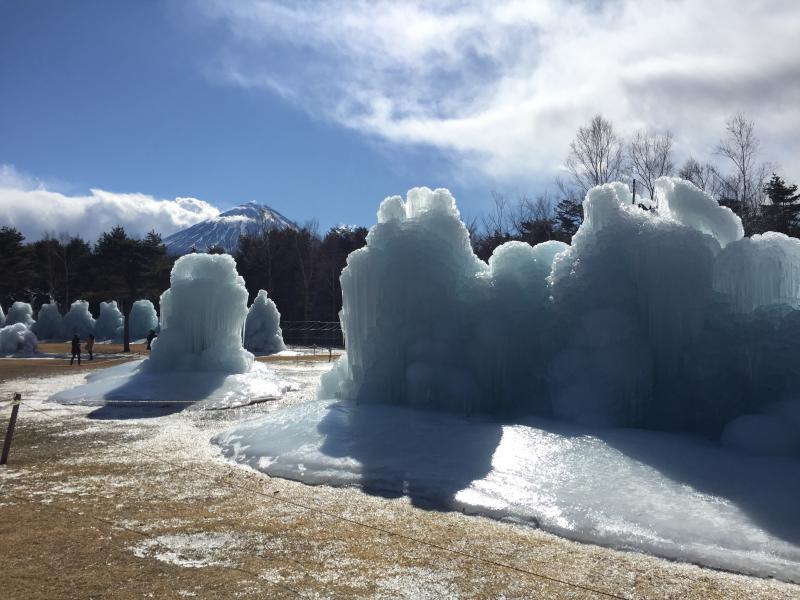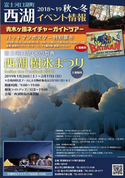 冬の富士河口湖の風物詩といえば、冬花火と西湖野鳥の森公園で行われる氷の祭典「樹氷まつり」。