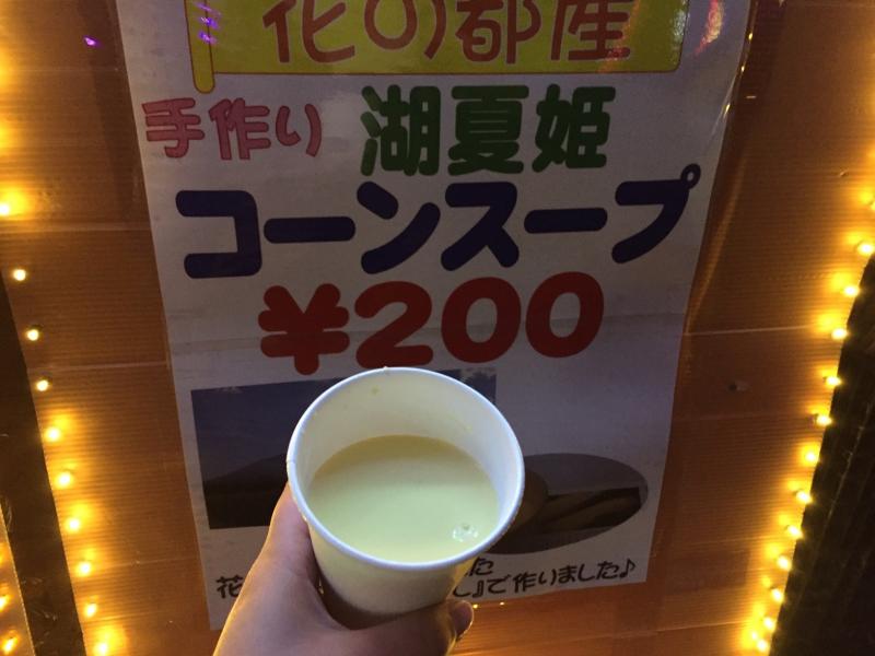 去年も 3回いただきましたが今年もその味は変わらず。山中湖で栽培されたコーンのうまみがギュッと詰まった、とっても濃厚で美味しいスープです。しかも 1杯 200円とお安い!