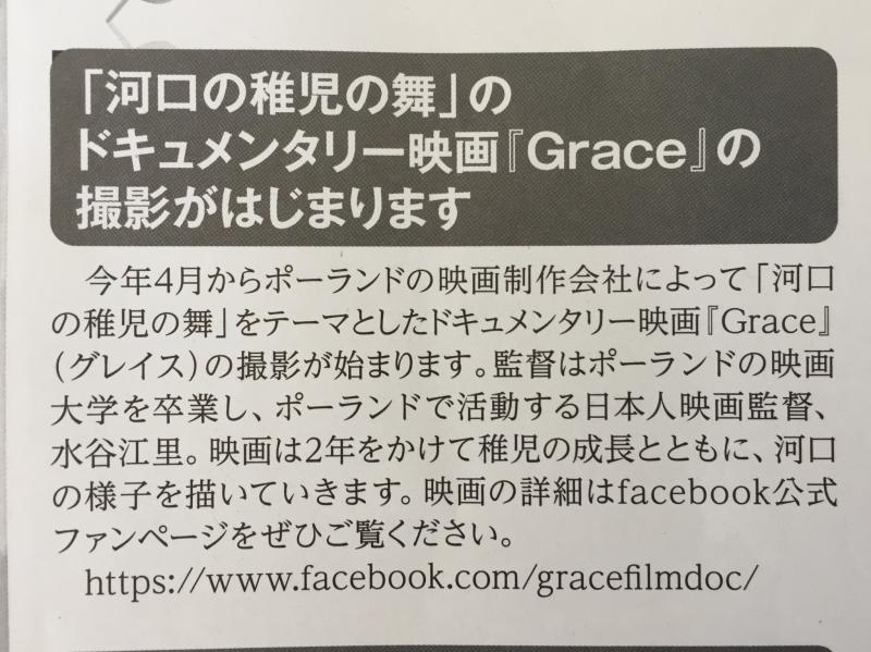 【河口の稚児の舞?】のドキュメンタリー映画【Grace】の撮影がはじまります
