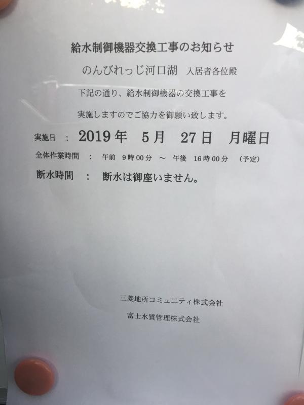 ⚠️5月27日(月)給水制御機器交換工事のお知らせ⚠️