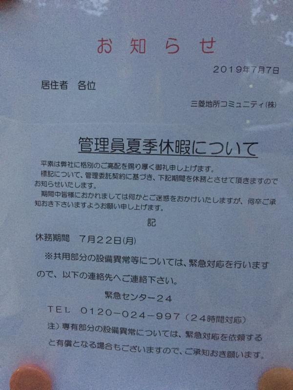 管理員夏季休暇について