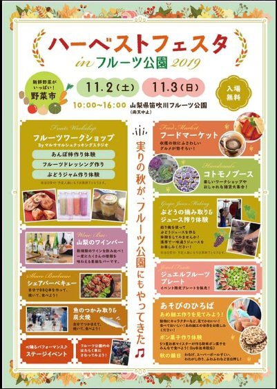 11月2日(土)~3日(日)は【ハーベストフェスタinフルーツ公園2019?】