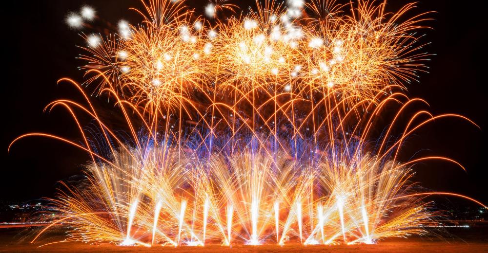 「笛吹川石和鵜飼」終了後は、10分間花火を打ち上げる「石和温泉鵜飼花火」が開催されます。観覧無料です。
