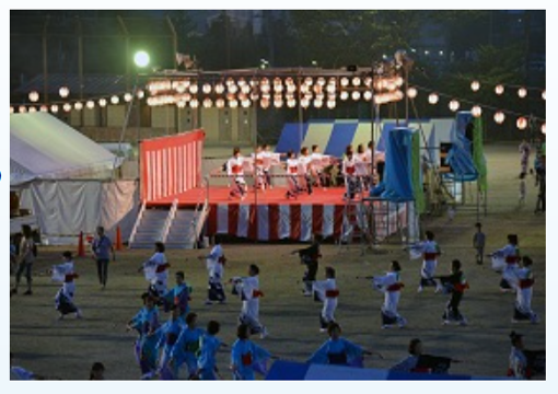 学校の校庭を会場にして、「キャラクターショー」や「北富士天王太鼓」、「盆踊り」などが行われ、多くの子どもたちが笑顔になります。